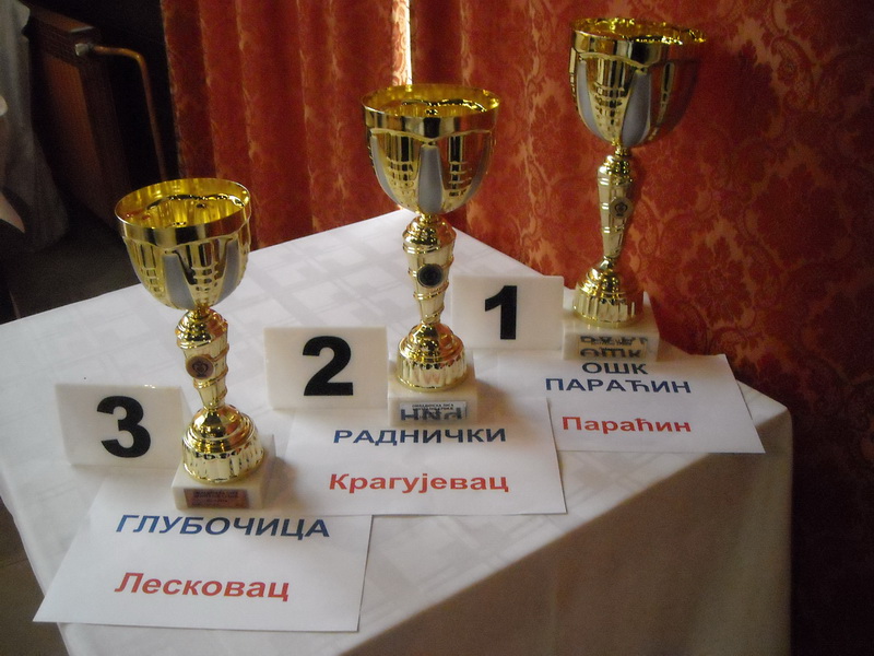 Три првопалсиране екипе добили су пехаре и медаље, као и поклон пакете Српске фабрике стакла из Параћина. Медаље је уручио мр Саша Јевтић, члан УО ШСЦС а пехаре најбољим екипама Миливоје Миливојевић, секретар ШСЦС.